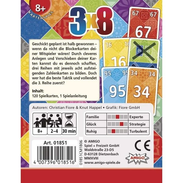 enn da nicht die Blockerkarten deiner Mitspieler wären! Durch cleveres Anlegen und Verschieben deiner Karten kannst du es dennoch schaffen, drei Reihen mit jeweils acht aufsteigenden Zahlenkarten zu bilden. Doch wer hat die beste Taktik und vollendet die 3. Reihe zuerst?
