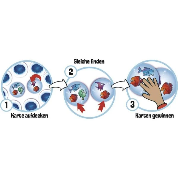 - Siehst du zwei gleiche Meerestiere, lege schnell eine Hand auf die betreffende Karte.