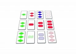 - Auf den Karten sehen die Spieler je 1-3 Symbole in 3 verschiedenen Formen, 3 verschiedenen Farben und auf 3 verschiedene Arten gefüllt.