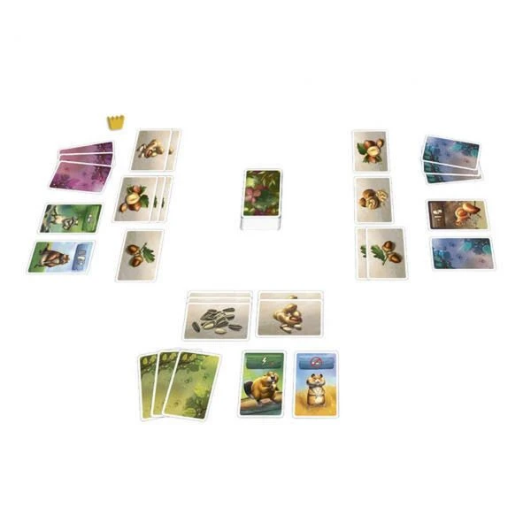 - Jeder Spieler erhält fünf Tierkarten. Von diesen spielt er jede Runde verdeckt zwei vor sich aus.