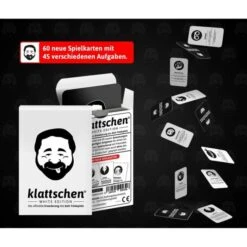 mit der offiziellen Erweiterung des Kult-Trinkspiels klattschen der Marke DENKRIESEN hast du das perfekte Spiel um einen feucht-fröhlichen Abend mit deinen Freunden zu erleben. Das Kartenspiel besteht aus 60 Spielkarten mit 45 neuen Anweisungen und einzigartigen Aufgaben.