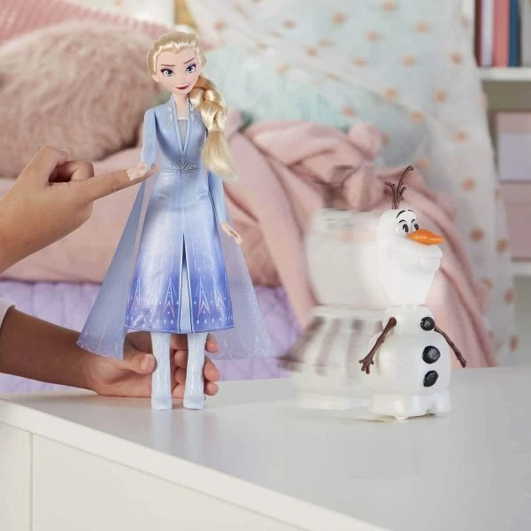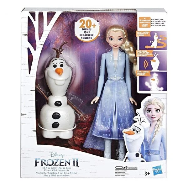 In Disneys Die Eiskönigin zwei haben Elsa und Olaf eine magische Verbindung und sind unzertrennlich. Diese sprechenden und leuchtenden Olaf und Elsa Puppen laden die Kids dazu ein, abenteuerliche Szenen aus dem Film nachzuspielen. Olaf kann aufgeweckt werden, indem der Schalter an seinem Kopf aktiviert und er angestupst wird. Wenn anschließend der rechte Arm der ferngesteuerten Elsa Puppe angehoben wird, beginnt Olaf, sich zu bewegen, zu sprechen und zu leuchten. Wenn Elsas Arm gesenkt und wieder angehoben wird, wird ein anderer vom Film inspirierter Satz von Olaf aktiviert. Er wird sich außerdem wieder bewegen und wieder leuchten. Die Olaf Puppe bietet über zwei0 Sounds und Sätze. Nachdem die Puppen etwa eine Minute lang inaktiv waren, wechseln sie in den Schlaf-Modus. Olaf kann durch Anstupsen reaktiviert werden. Dieses Set mit den Lieblingscharakteren, schon aus dem ersten Teil bekannt, ist perfekt als Weihnachts- oder Geburtstagsgeschenk für Kinder ab drei Jahren geeignet, die die magische Welt von Disneys Die Eiskönigin zwei lieben.