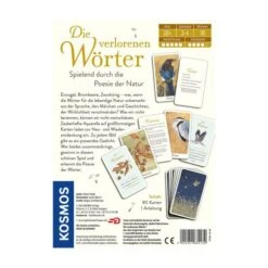 Poesie ist Sprache in ihrer schönsten Form. Ob Pflanzen oder Tiere – bei diesem Kartenspiel werden die richtigen Pärchen gesucht. Wo ist die passende Textkarte zu den Bilderkarten Reiher, Eisvogel, Löwenzahn und Kastanie? Welche Beschreibung passt am besten? Wem es gelingt, die meisten Textkarten mit poetischen Gedichten auf seinen großformatigen Pflanzen- und Tierkarten abzulegen, gewinnt! Das Kartenspiel zum Bestseller-Buch „Die verlorenen Wörter“ von Robert Macfarlane ist eine tolle Gelegenheit, Poesie zu entdecken und den Blick auf die Schönheit der Natur zu lenken. Ein wunderschönes Familienspiel und ein ganz besonderes Geschenk.
