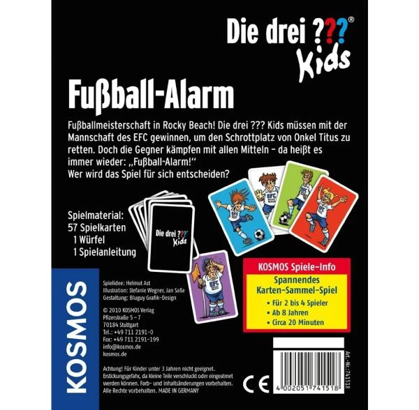 Fußballmeisterschaft in Rocky Beach – und Onkel Titus’ Schrottplatz steht auf dem Spiel! Die drei ??? Kids müssen mit der Mannschaft des EFC gewinnen, um ihn zu retten. Doch die Gegner um Skinny Norris kämpfen mit allen Mitteln. Welche Spieler können sich am besten durchsetzen? Oder wird ein einzelner Spieler das entscheidende Tor schießen? Ein spannendes Sammelspiel mit Nervenkitzel!