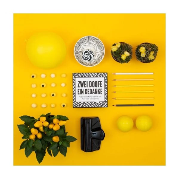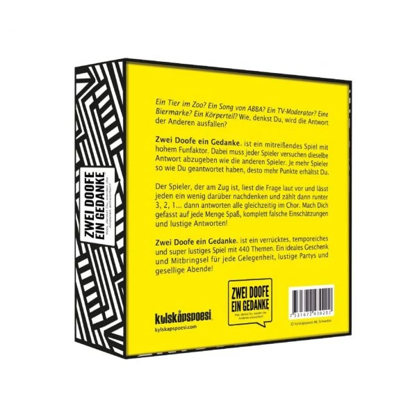 Zwei Doofe ein Gedanke ist ein verrücktes, temporeiches und super lustiges Spiel mit 440 Themen. Ein ideales Geschenk und Mitbringsel für jede Gelegenheit, lustige Partys und gesellige Abende.