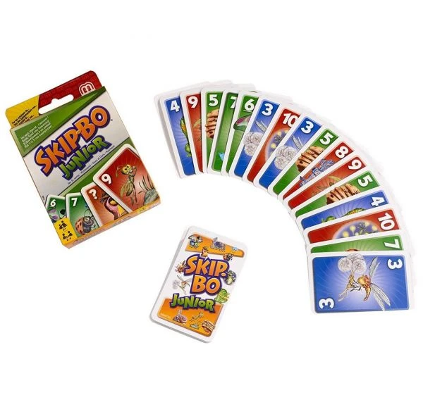 Das beliebte Skip-Bo jetzt auch als Junior-Variante. Ein einfach zu erlernendes, schnelles Kartenspiel für Groß und Klein. Die Karten müssen in der richtigen Reihenfolge abgelegt werden. Wer als Erster alle seine Karten loswird, gewinnt. Eine erste Heranführung an Zahlen und Zahlenfolgen – mit schönen Tiermotiven. Für 2-4 Spieler.