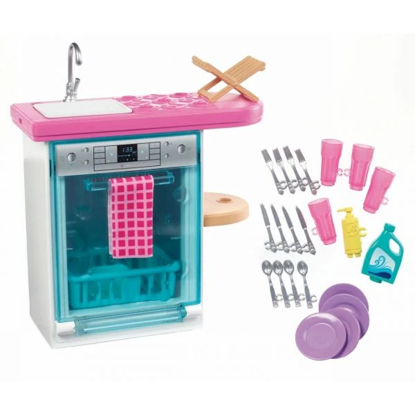 Das Barbie Möbel und Zubehör Sortiment lässt Geschichten und Träume zum Leben erwachen. Mit beliebten Spielsets wie der Spülmaschine mit Geschirr und Zubehör wird Hausarbeit zum Erlebnis. Die Möbel lassen sich nach Lust und Laune immer wieder neu anordnen. Jedes Set enthält traditionelle Möbel im typischen Barbie-Design und passendes Zubehör für noch mehr Spielspaß. Kreative Möbel-Spielsets regen Kinder an, ihrer Fantasie freien Lauf zu lassen. Die Möbel und Accessoires für Barbies Puppenhaus eröffnen noch mehr Spielmöglichkeiten. Jedes Barbie Set enthält Möbel und passendes Zubehör; Puppe separat erhältlich. Alle Artikel separat erhältlich. Abweichungen in Farbe und Gestaltung vorbehalten.