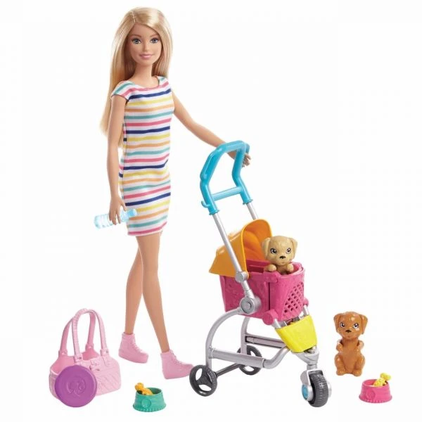 Mit diesem Spielset können kleine Tierliebhaber der Barbie-Puppe dabei helfen, mit ihren Hündchen Gassi zu gehen