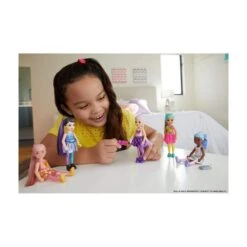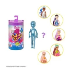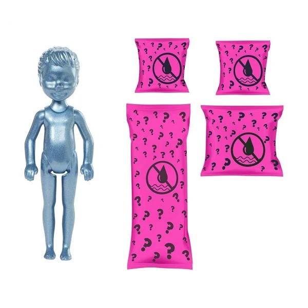Die Barbie Color Reveal Chelsea-Puppen begeistern schon beim Auspacken und enthalten sechs Überraschungen! Eines ist sicher: Die niedlichen Chelsea-Puppen tragen ein schimmerndes Outfit. Welches, wird erst später enthüllt. Auch das Auspacken macht Spaß: Einfach an der Lasche ziehen, um die äußere Verpackung zu entfernen und einen durchsichtigen Behälter zu enthüllen. Im Inneren verbergen sich eine metallisch türkise Color Reveal Chelsea-Puppe und vier Überraschungstüten. Alles herausnehmen und den Behälter mit Wasser füllen, dann die Puppe ins Wasser tauchen und hin- und herdrehen. Das Wasser färbt sich metallisch türkis – und wenn man die Puppe herausnimmt, wird ihr Aussehen sichtbar. Jede Puppe hat eine andere Kombination aus Augenfarbe, modellierten Metallic-Haaren, Hautton, verziertem Oberteil und metallisch schimmernden Beinen – und es gibt noch mehr Überraschungen: Die Tüten enthalten einen ansteckbaren Pferdeschwanz, einen Glitzerrock, passende Schuhe und ein modisches Accessoire! Die Chelsea-Puppe in eiskaltes Wasser tauchen, damit eine lustige Verzierung auf ihrem Gesicht sichtbar wird. Kinder können diesen tollen Moment immer wieder neu erleben! Jede Serie ist von einem anderen Thema inspiriert. Bei diesen Color Reveal Chelsea-Puppen mit modellierten Haaren in metallischen Farbtönen und bunten ansteckbaren Haarteilen dreht sich alles um schimmernden Glanz. Dieses und weiteres Barbie- und Chelsea-Zubehör kann im Behälter verstaut werden. Welche Puppe kommt zum Vorschein? Kinder können alle sammeln und kombinieren und so für noch mehr Spielspaß sorgen! Alle Artikel separat erhältlich. Abweichungen in Farbe und Gestaltung vorbehalten.