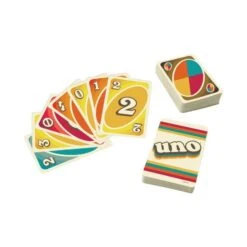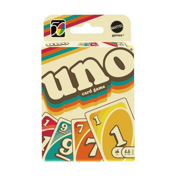 Dieses Spiel, das bei Alt und Jung für rasanten Spielspaß und unverhoffte Wendungen steht, war noch nie so nostalgisch! Es wird wie das klassische UNO gespielt und wer nur noch eine Karte hat, muss laut „UNO!“ rufen. Jedes Kartendeck separat erhältlich. Abweichungen in Farbe und Gestaltung vorbehalten.