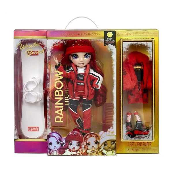 - DAS PERFEKTE GESCHENK – Mit 2 tollen Outfits, einem Snowboard für wilde Abfahrten, Schlittschuhen und viel Stil ist die Rainbow High Winter Break Ruby Anderson Modepuppe das perfekte Geschenk für Geburtstage oder andere Anlässe für Kinder ab 6 Jahren