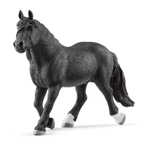 Mit seinen weißen Söckchen an den Hinterläufen sieht der ansonsten pechschwarze Noriker Hengst richtig freundlich aus. Kein Wunder: Für ihr liebes Wesen sind diese Pferde auch bekannt. Wer würde sie da nicht ins Herz schließen? So stämmig und kompakt, wie der Noriker da auf der Koppel steht, bringt ihn nichts so leicht aus der Ruhe. Das ist auch gut so, denn auf den schmalen Gebirgspfaden seiner Heimat kann er sich Nervosität nicht leisten!