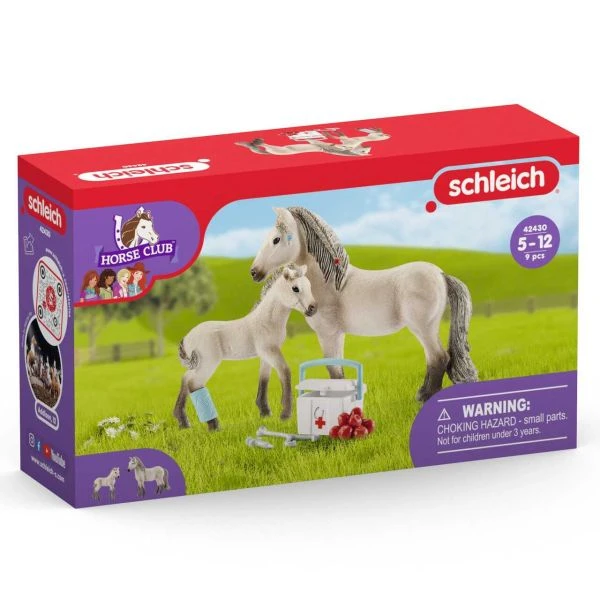 Inhalt: 1x Island Pony Stute, 1x Island Pony Fohlen, 1x Erste-Hilfe-Kiste, 1x Spritze, 1x Bandage, 1x Stethoskop, 1x Äpfel