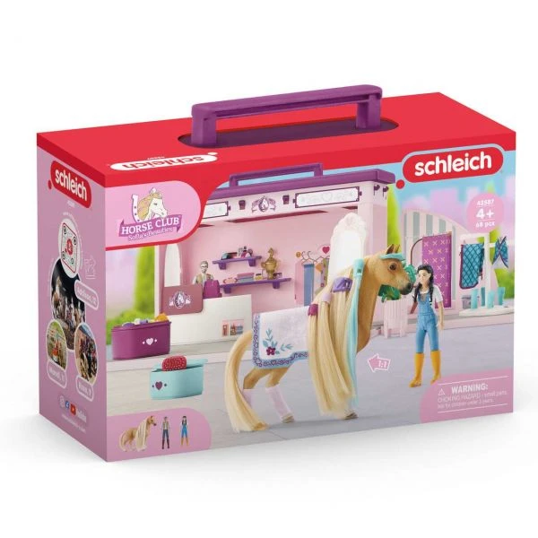 In der Pop-Up Boutique von Schleich® Horse Club Sofia’s Beauties gibt es tolle Decken und Accessoires in allen Farben. So ist für jedes Pferd etwas dabei. Ist dir schon aufgefallen, dass man die Mähnen und Schweife nicht nur flechten und stylen, sondern auch austauschen kann? So müssen sich Sofia und ihre Stute nicht nur für eine Frisur entscheiden. Perfekt für jedes Fotoshooting. Auch wenn es mal auf dem Spielplatz hinter dem Haus stattfindet. Die ganze Boutique kann man nämlich ganz einfach zusammenklappen und mitnehmen. Also, bitte alle einmal stillstehen und „Cheeeese“ sagen!